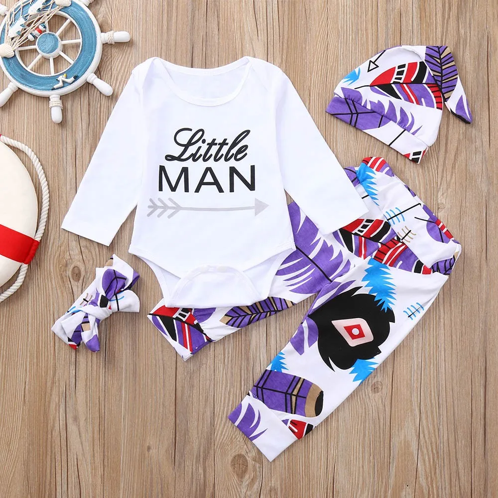 Best Chance of CHAMSGEND 2019 Fashion 4PCS Toddler Baby Letter Print Romper+Feather Pants+Hat+Headbands Fashion Se
